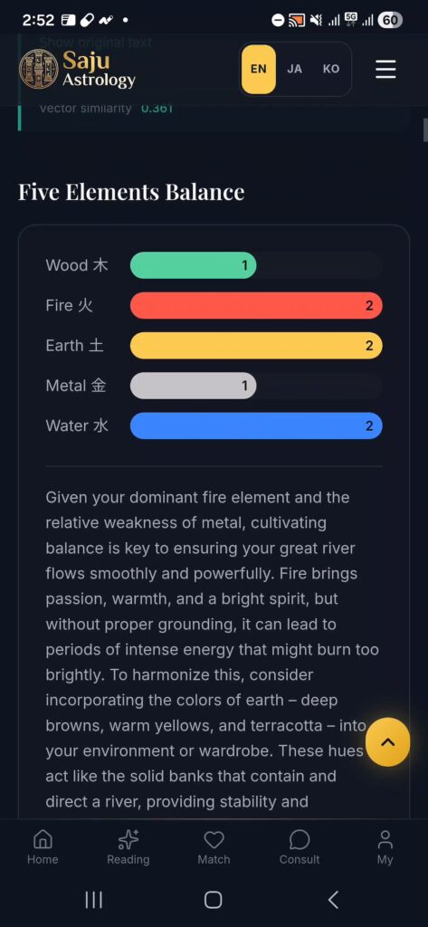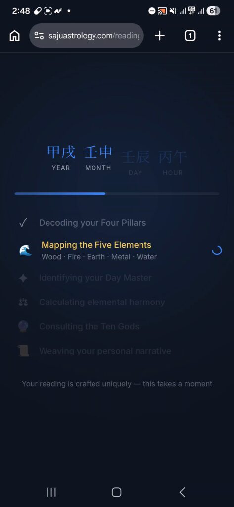Transparency matters. Unlike generic horoscopes that pretend to know everything from a birthday alone, Saju analysis is honest about what each data point contributes — and what’s missing.