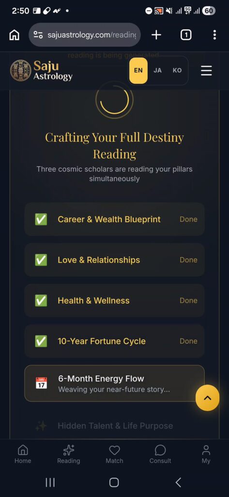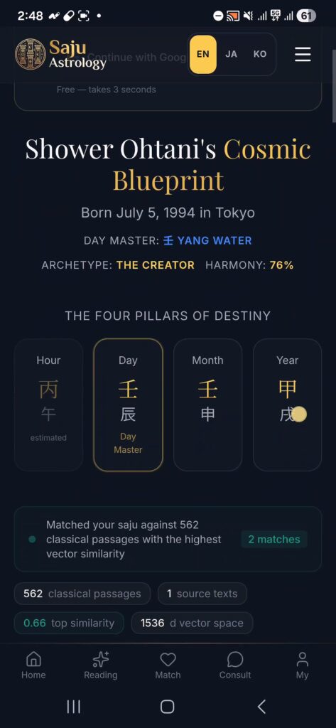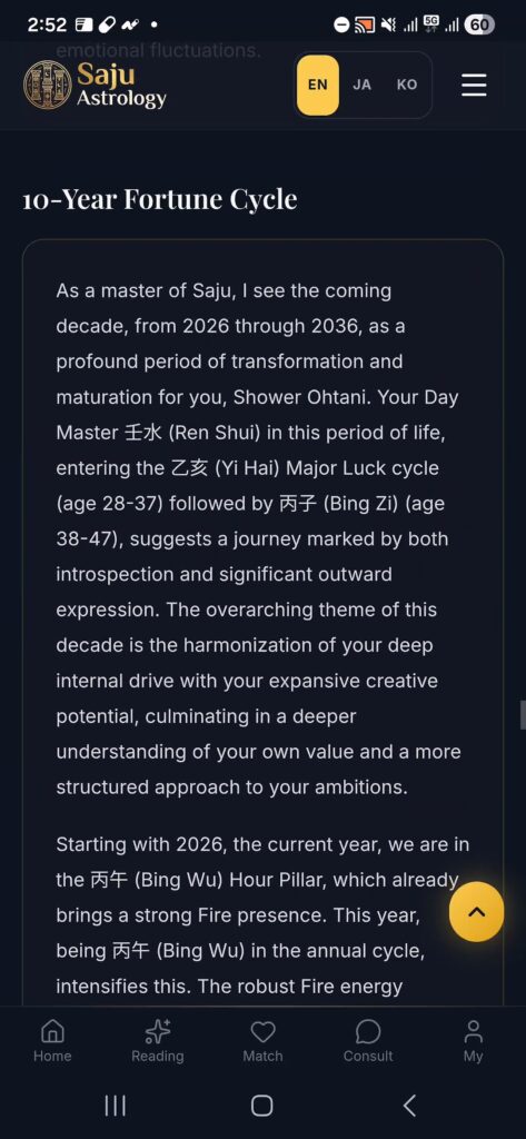 You don’t need to be a two-way superstar to benefit from understanding your destiny cycles. Every person’s Saju chart contains the same structural elements — Day Master, major cycles, elemental interactions — that shape career timing, relationship compatibility, and personal growth.