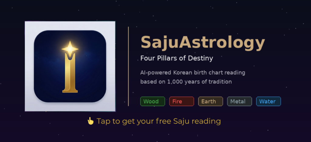 Saju (사주, 四柱) — literally “Four Pillars” — is a destiny analysis system that originated in ancient China and has been practiced and refined across East Asia for over 5,000 years. In Korea, it evolved into a sophisticated discipline called Myeongnihak (명리학), integrating classical texts, astronomical precision, and deep philosophical frameworks.